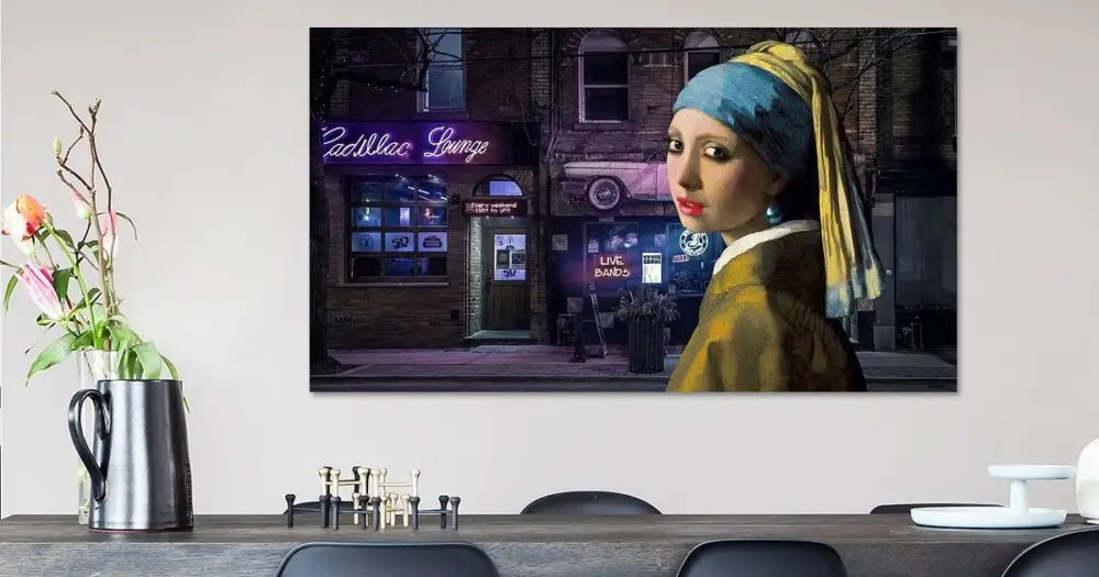 Jouw gekozen kunst als print op doek, gespannen in een aluminium frame. Snel en eenvoudig te verwisselen voor een frisse uitstraling, helemaal zoals jij het wilt.