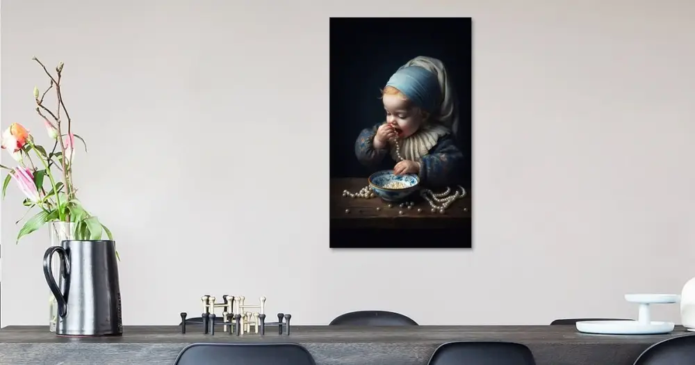 Jouw gekozen kunst als print op doek, gespannen in een aluminium frame. Snel en eenvoudig te verwisselen voor een frisse uitstraling, helemaal zoals jij het wilt.