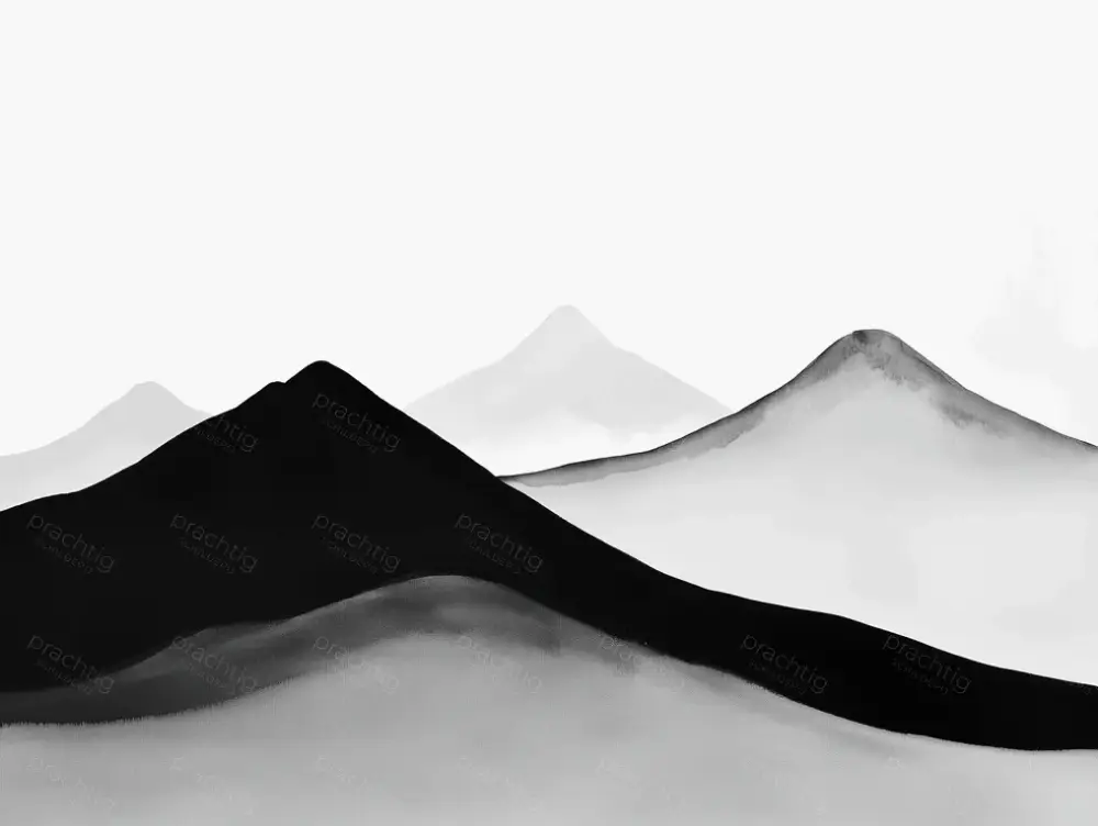 Ervaar de rust van een zwart-wit berglandschap. De eenvoudige lijnen en zachte grijstinten brengen een serene sfeer. Deze bergen lijken bijna te zweven in een dichte mist. De subtiele overgangen tussen licht en schaduw geven diepte en mysterie. Dit werk straalt eenvoud en kalmte uit. Ideaal voor een rustige plek in huis. Laat je gedachten dwalen tussen de toppen.
