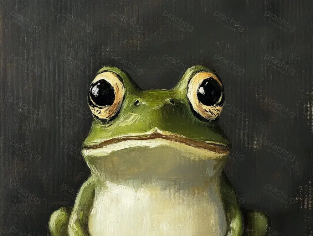 Achat Immédiat Nieuwsgierige Kikker met Grote Ogen – Olieverf / 30×40