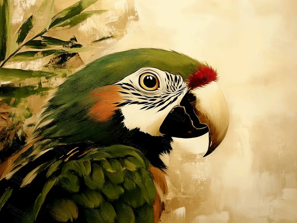 Achat Immédiat Papegaai met Groene Veren – Olieverf / 30×40