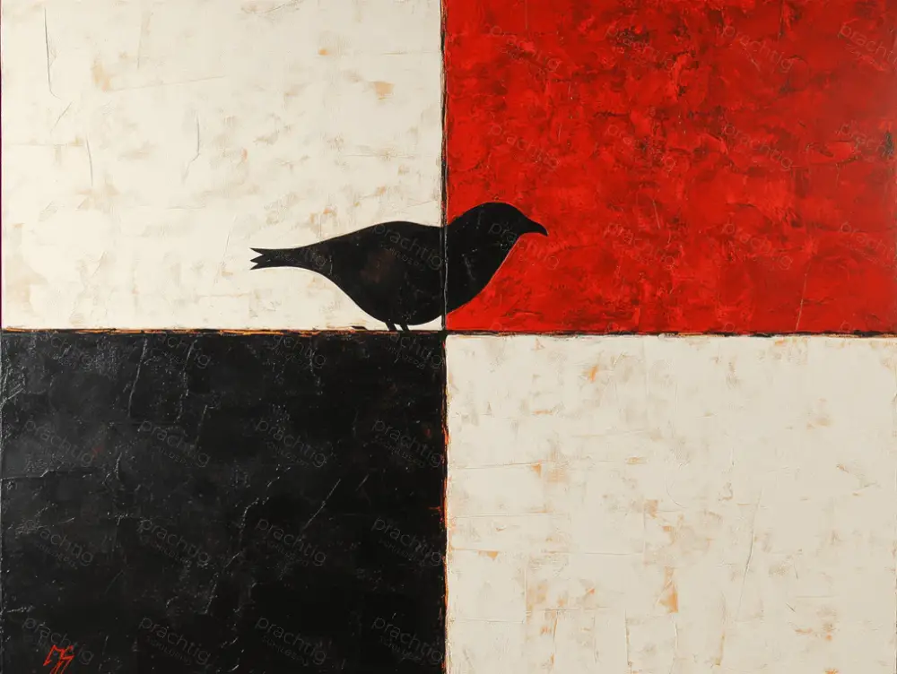 Achat Immédiat Rode en zwarte vogelvorm – Olieverf / 30×40