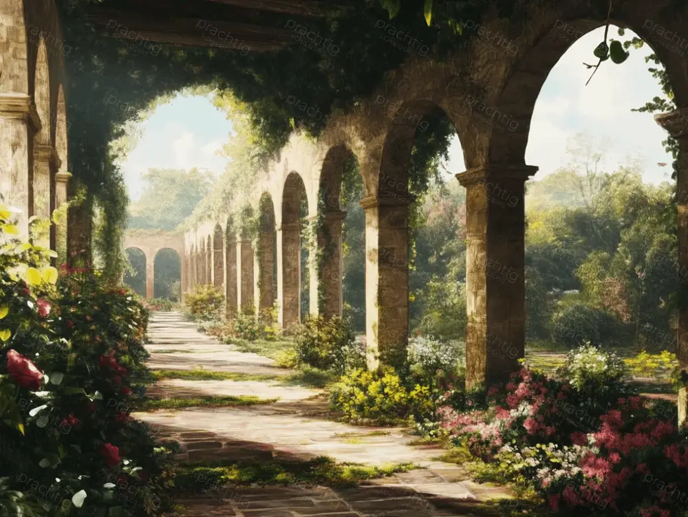 Achat Immédiat Romantische tuin met bogen – Dibond / 60×80