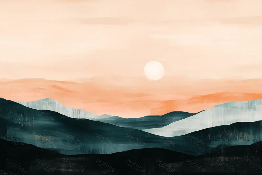 Dit serene schilderij vangt een zonsopgang boven een glooiend berglandschap. De zachte perzikkleurige lucht wordt prachtig gecombineerd met de donkere, silhouetachtige bergen. De subtiele penseelstreken geven het werk een dromerige uitstraling. Het spel van licht en schaduw creëert diepte en nodigt je uit om te dromen. De eenvoud van de compositie straalt rust uit en nodigt uit tot reflectie. Deze stijl doet denken aan rustgevende landschappen, maar dan met een moderne twist. Hang het in je woonkamer of kantoor voor een kalmerende sfeer die je dagelijks inspireert.
