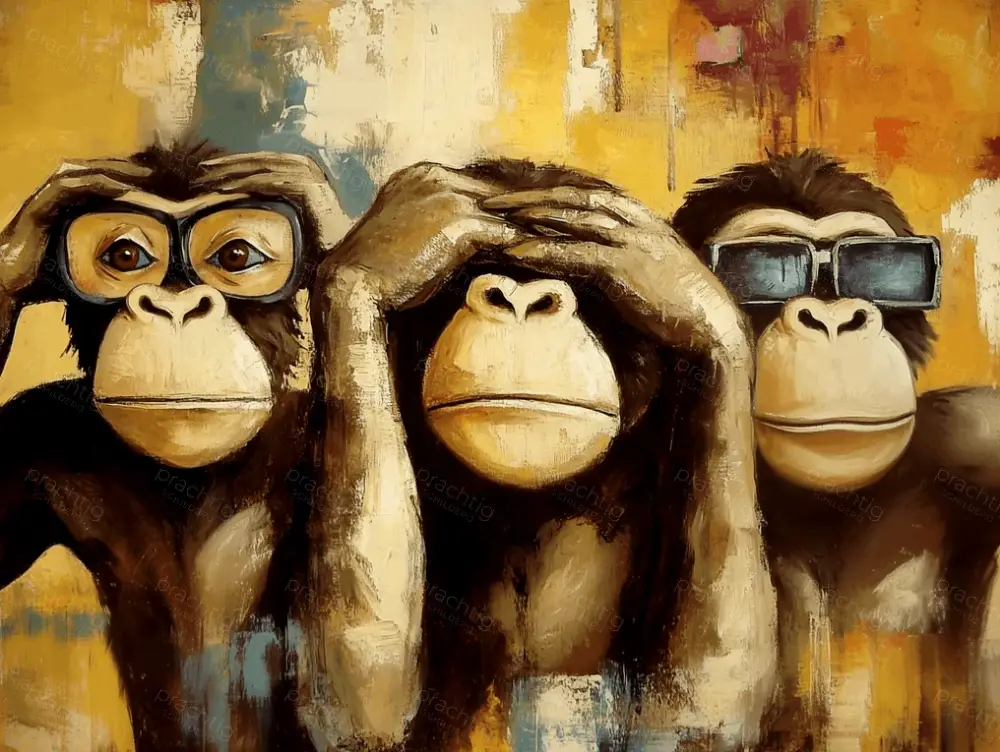 Acheter Direct Drie Wijze Apen in Kleur – Canvas / 30×40