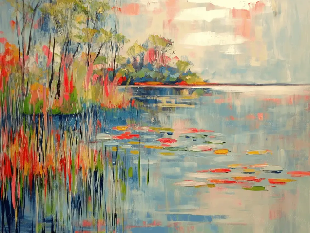 Acheter Direct Landschap met kleurrijke waterlelies – Dibond / 60×80