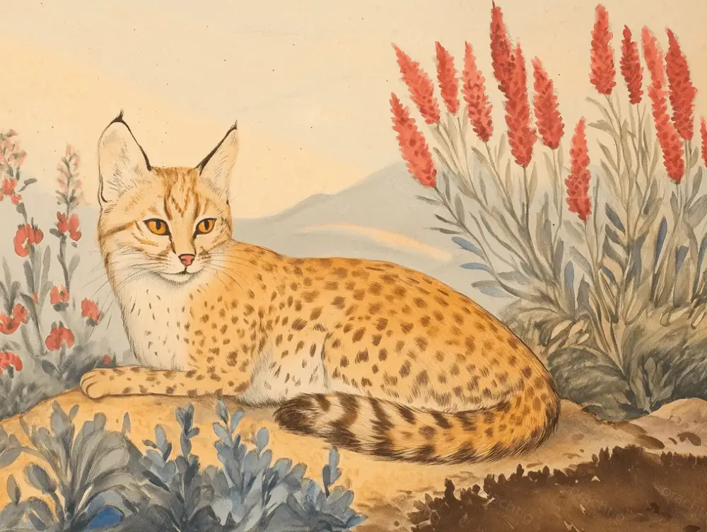 Acheter Direct Rustende lynx in bloemenveld – Dibond / 60×80