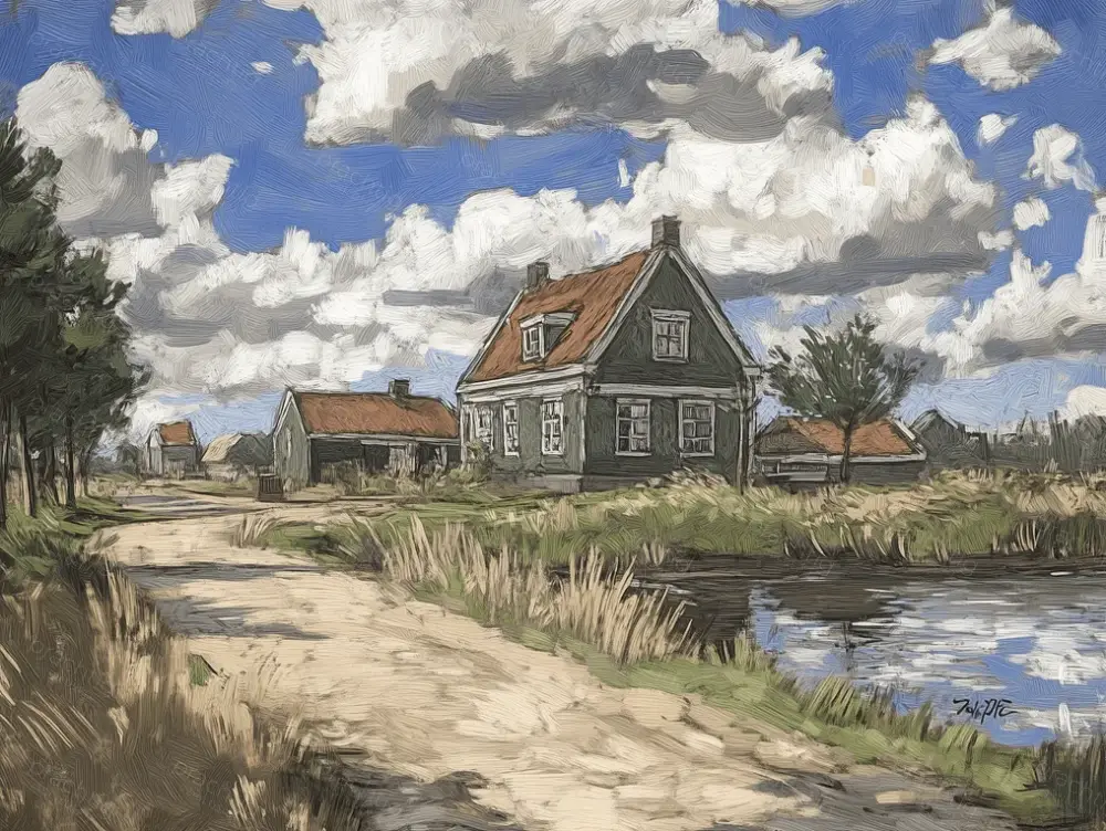 Acheter Direct Rustieke boerderij onder wolkenhemel – Dibond / 60×80