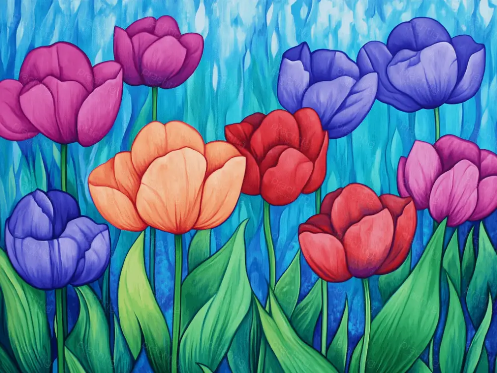 Acheter Direct Vrolijke tulpenzee in blauw – Dibond / 60×80