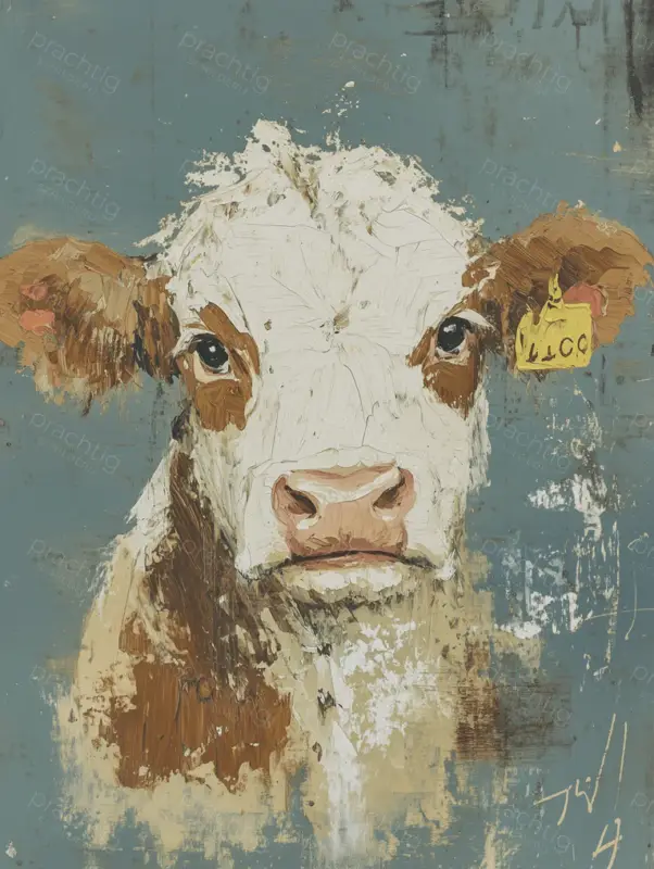 Een nieuwsgierige koe kijkt je recht aan. De gedurfde penseelstreken in wit en bruin brengen het dier tot leven. Tegen een zachte blauwe achtergrond ontstaat een mooi contrast. De expressieve ogen trekken meteen je aandacht. Dit werk geeft je interieur een landelijke en levendige sfeer. Ideaal voor liefhebbers van dieren en het boerenleven.