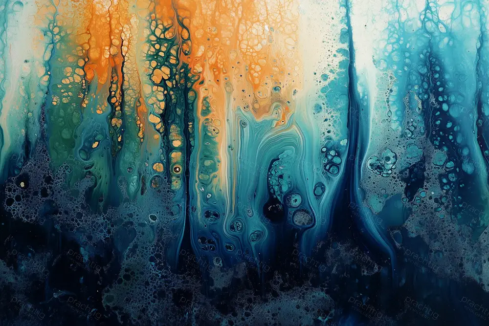 Ervaar de dynamiek van een vloeiende kleurenstorm in blauw en oranje. De kleuren vloeien samen in een boeiende compositie. De combinatie van warme oranje tinten en koele blauwe nuances creëert een spannend contrast. De kenmerkende cellen en patronen doen denken aan natuurlijke vormen. De golvende lijnen en structuren geven een gevoel van beweging. Dit kunstwerk past goed in moderne en speelse interieurstijlen. Laat je verbeelding spreken en geniet van de levendige energie die het uitstraalt.