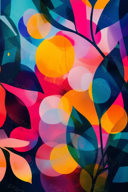Dit levendige schilderij brengt je meteen in een goede stemming. De speelse combinatie van felle kleuren zoals oranje, roze, en blauw vormt een dynamisch tafereel vol energie. Je ziet abstracte vormen van bladeren en cirkels die harmonieus samenkomen. De overlapping van de vormen creëert diepte en beweging. Dit roept een gevoel van frisse lucht en vrijheid op. De moderne stijl maakt het een opvallend stuk, geschikt voor ruimtes waar je kleur en energie wilt toevoegen. Perfect voor een woonkamer of kantoor. De compositie trekt je ogen rond en nodigt uit om steeds nieuwe details te ontdekken. Het is een feest voor je zintuigen.