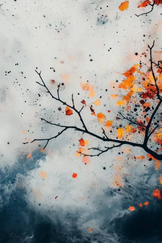 Dit schilderij vangt de essentie van de herfst met een elegante tak bezaaid met oranje en rode bladeren. De achtergrond is een mengeling van zachte grijs- en blauwtinten, waardoor de warme herfstkleuren van de bladeren nog meer opvallen. De compositie is dynamisch met spatten van verf die de beweging van vallende bladeren en de frisse herfstwind suggereren. De mix van abstractie en realisme geeft het werk een moderne uitstraling. Dit kunstwerk roept een gevoel van rust en verandering op, perfect voor een woonkamer of kantoor waar je inspiratie zoekt.