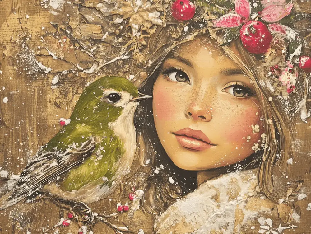 Achetez Aujourd’hui Meisje met vogel en rode bessen – Dibond / 60×80