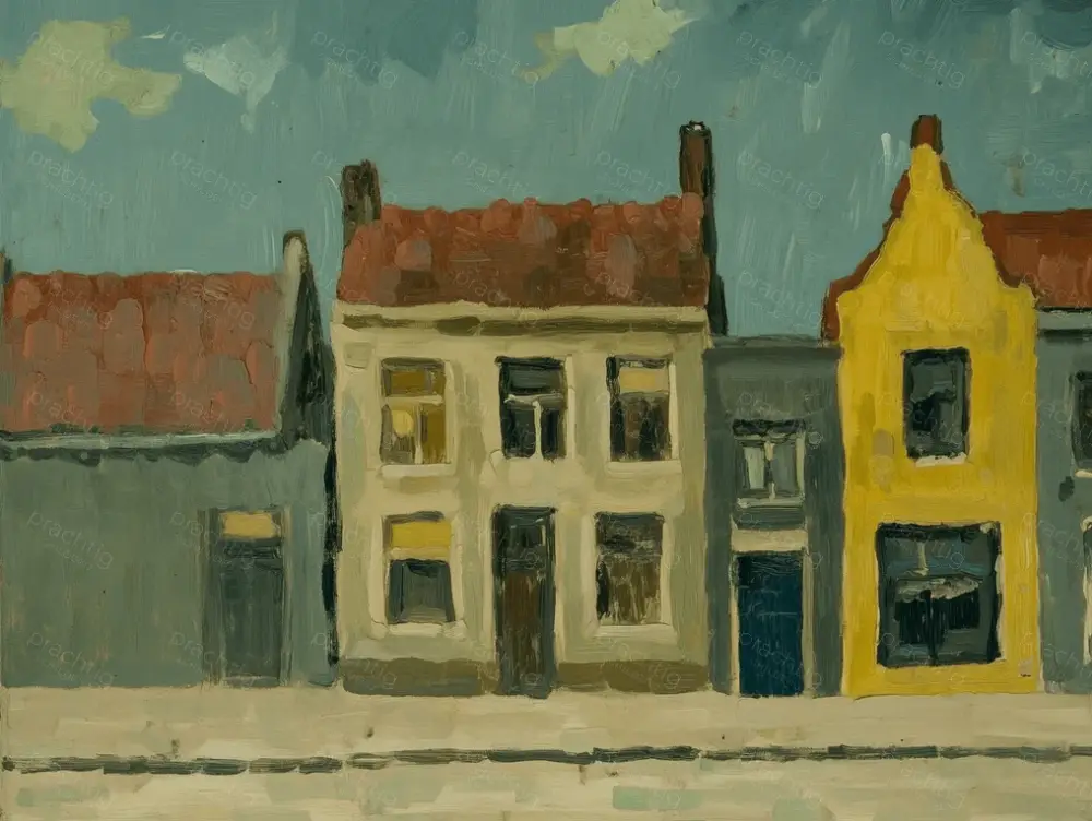 Affaire À Saisir Rustieke Stadsgevels in Zacht Licht – Olieverf / 60×80
