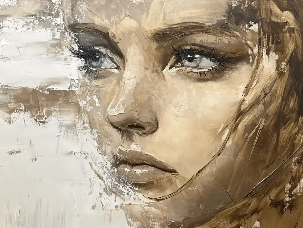 Ervaar de diepte in dit portret van een vrouw. Haar ogen vertellen een verhaal van melancholie en kracht. De warme aardetinten geven het werk een zachte uitstraling. De penseelstreken zijn krachtig en voegen textuur toe. Dit kunstwerk brengt sfeer en karakter in jouw interieur. Perfect voor de woonkamer of studeerkamer. Laat je meevoeren door de intense blik.
