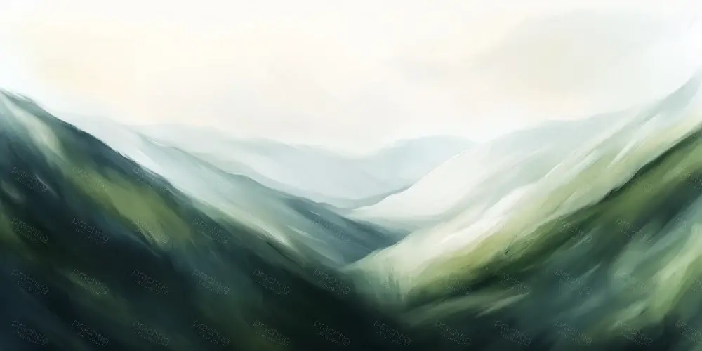 Stap in een wereld van rust met dit schilderij van een uitgestrekt berglandschap. Zachte penseelstreken vormen glooiende heuvels en verfrissende valleien in tinten van groen en blauw. De mistige bergen verdwijnen in de verte onder een lichte hemel, wat een gevoel van ruimte en vrijheid geeft. De subtiele kleurovergangen en het vloeiende geheel doen denken aan het werk van Nederlandse meesters. Dit kunstwerk brengt sereniteit en frisheid in jouw huis, en past mooi in een modern interieur.