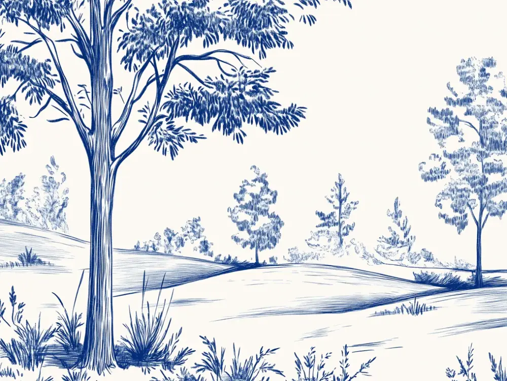 Blauw Woud in Lijnenspel – Canvas / 30×40 Nouveauté