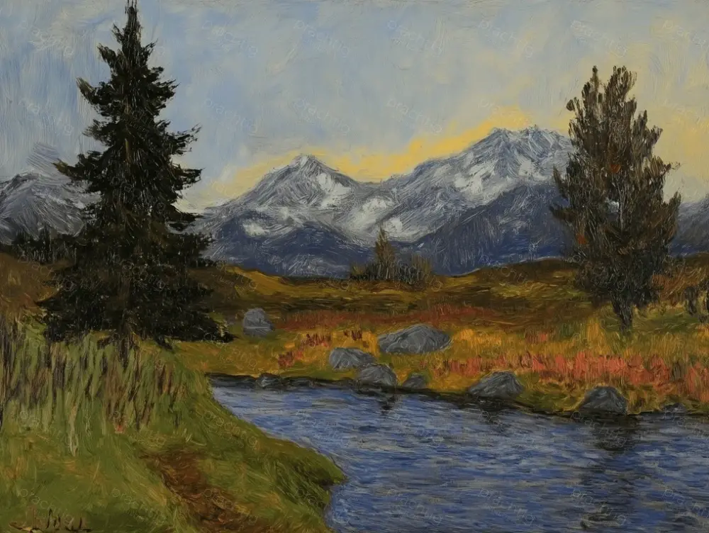 Marque Berglandschap met Rivier – Canvas / 30×40