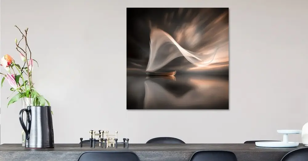 Jouw gekozen kunst als print op doek, gespannen in een aluminium frame. Snel en eenvoudig te verwisselen voor een frisse uitstraling, helemaal zoals jij het wilt.