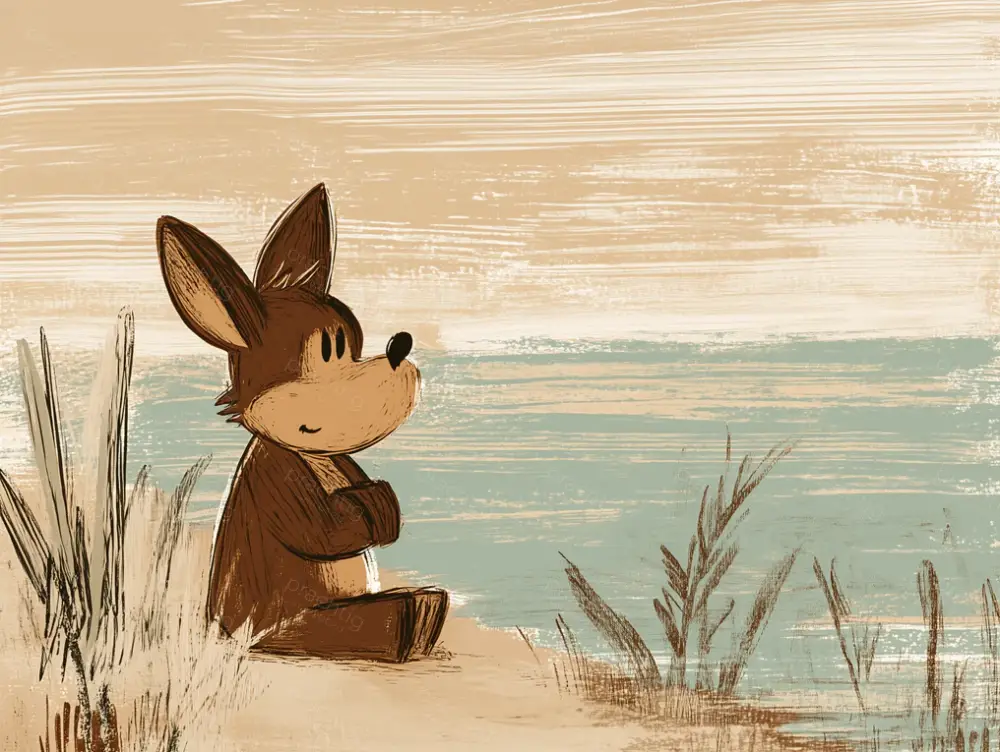 Zittende Hond aan Rivieroever – Olieverf / 30×40 Retour Gratuit