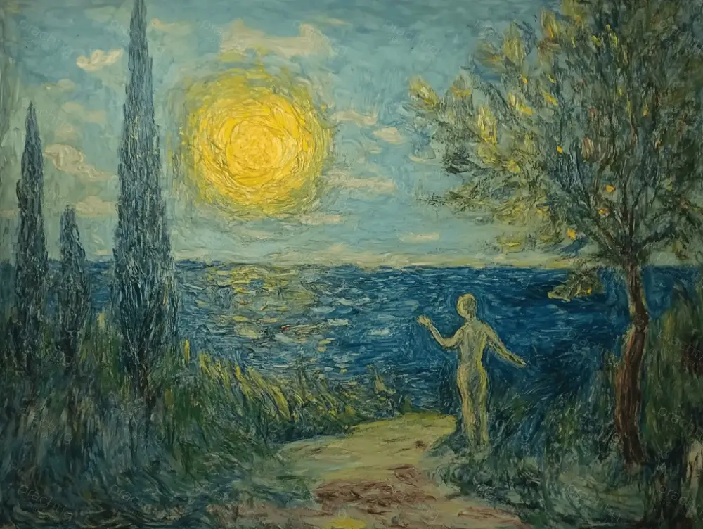 Zonsondergang aan de Blauwe Kust – Olieverf / 60×80 Livraison Gratuite