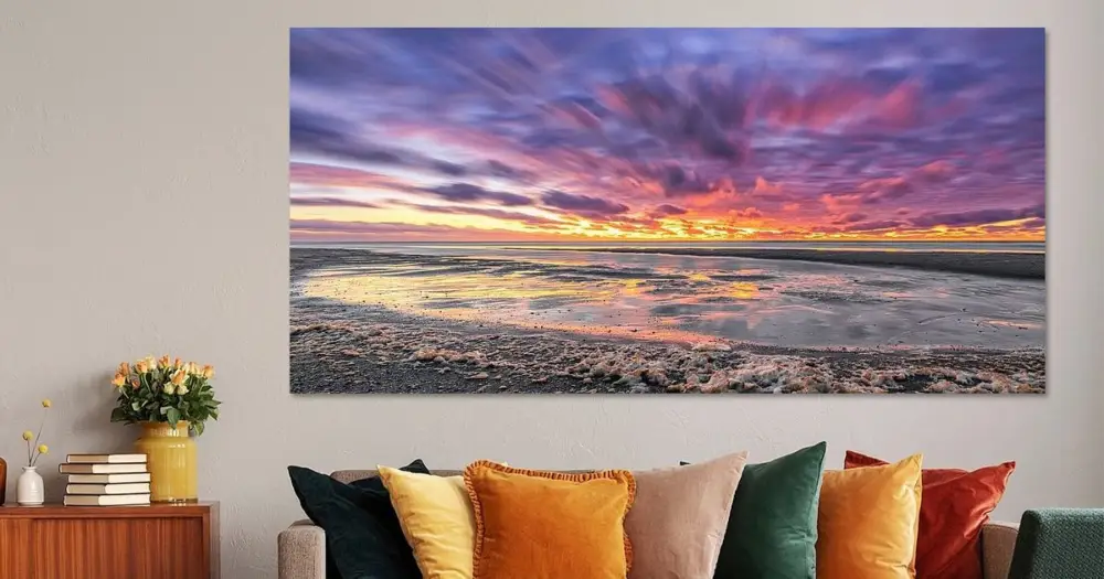 Jouw gekozen kunst als print op doek, gespannen in een aluminium frame. Snel en eenvoudig te verwisselen voor een frisse uitstraling, helemaal zoals jij het wilt.