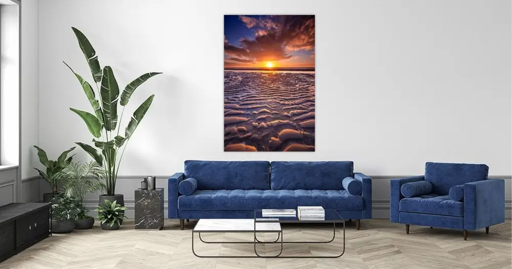 Jouw gekozen kunst als print op doek, gespannen in een aluminium frame. Snel en eenvoudig te verwisselen voor een frisse uitstraling, helemaal zoals jij het wilt.