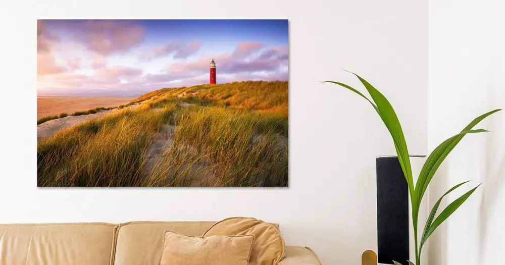 Jouw gekozen kunst als print op doek, gespannen in een aluminium frame. Snel en eenvoudig te verwisselen voor een frisse uitstraling, helemaal zoals jij het wilt.