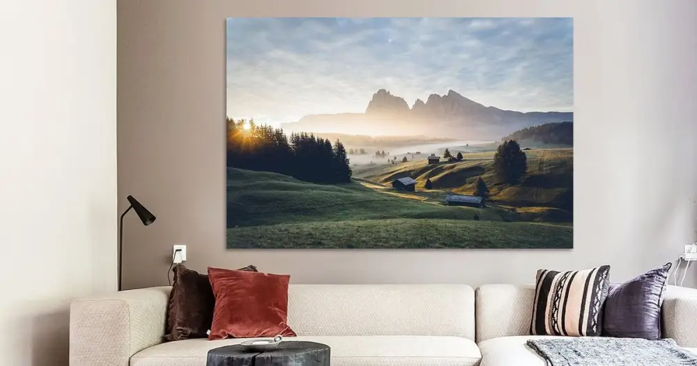 Jouw gekozen kunst als print op doek, gespannen in een aluminium frame. Snel en eenvoudig te verwisselen voor een frisse uitstraling, helemaal zoals jij het wilt.