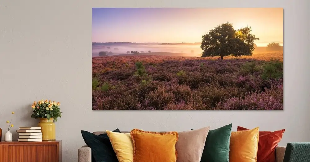 Jouw gekozen kunst als print op doek, gespannen in een aluminium frame. Snel en eenvoudig te verwisselen voor een frisse uitstraling, helemaal zoals jij het wilt.