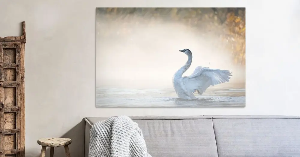 Zwaan met de vleugels wijd in de Brabantse Biesbosch van Judith Borremans Natuurfotografie – NL774153M13S75x50 Prix Réduit