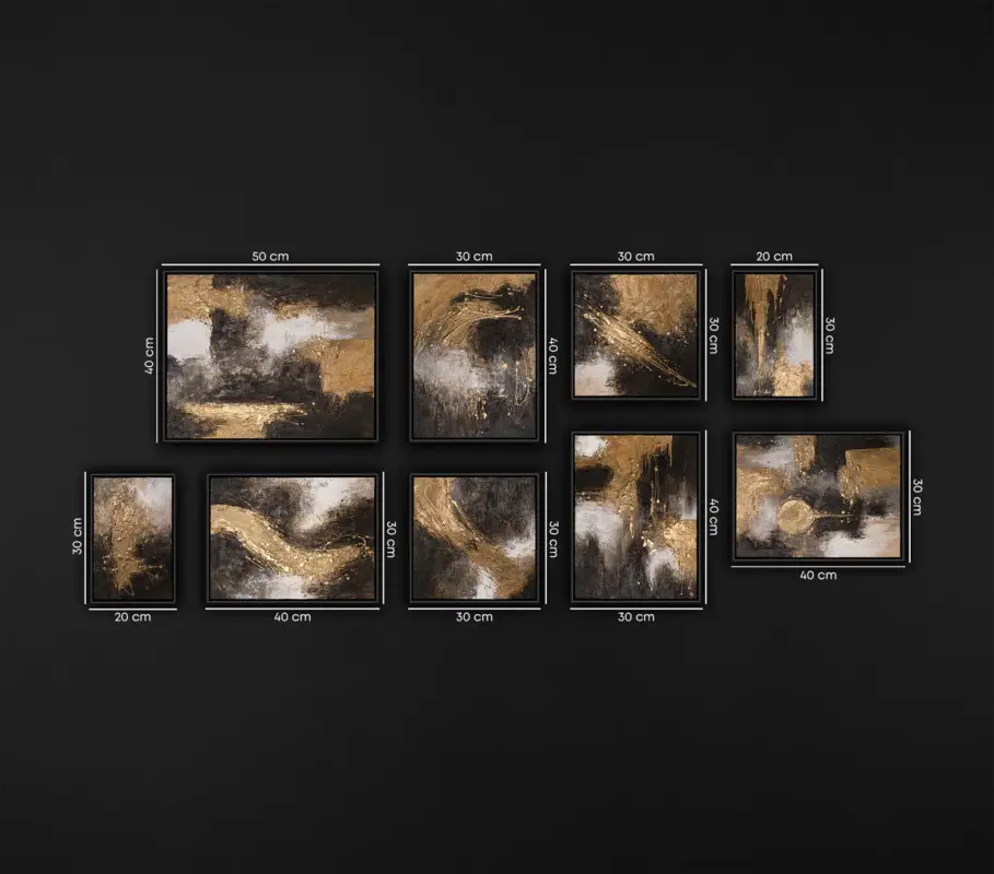 Zwart Goud Abstract Schilderij Set (3–9 stuks) – Handgeschilderde 3D Wanddecoratie | YS Art – 9 Bilder Commander Maintenant