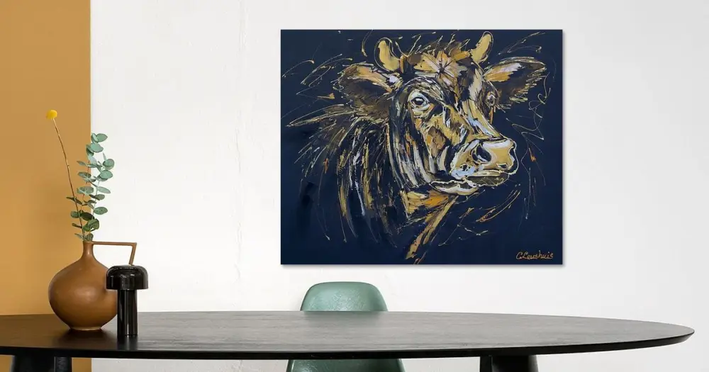 Zwart/goud koe van Vrolijk Schilderij – NL693993M13S65x55 Prix Bas