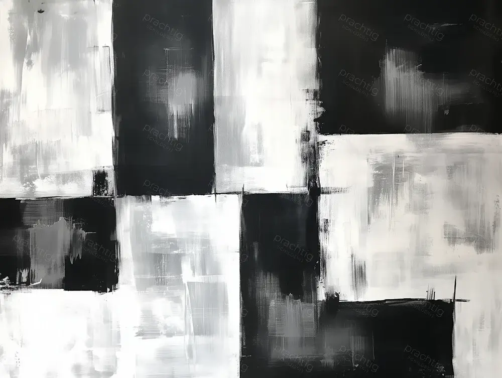Strakke lijnen en contrasterende tinten vormen een dynamisch beeld. Grote vlakken zwart en wit wisselen elkaar af, met grijze tinten die voor een subtiele overgang zorgen. De ruwe penseelstreken geven een krachtige energie aan het geheel. Dit abstracte ontwerp straalt moderniteit uit en trekt de aandacht zonder te overheersen. Perfect voor een minimalistisch ingerichte ruimte. De balans tussen de donkere en lichte delen maakt het schilderij levendig en uitnodigend. Deze moderne stijl past goed in een eigentijdse woonkamer of kantoor, waar het de ruimte karakter en diepte geeft.